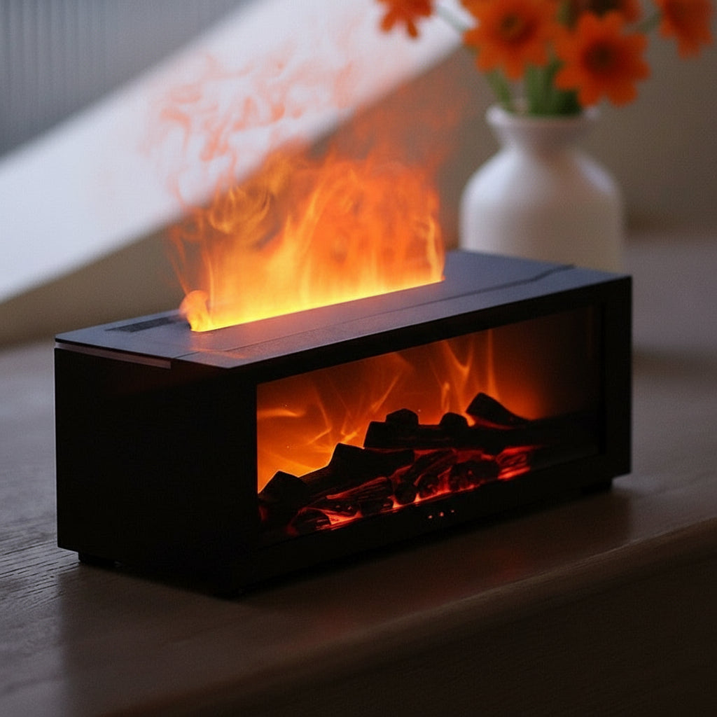 Der Kamin, den du überall hinstellen kannst. Ein Knopfdruck und eine leise, flackernde Flamme aus Licht und Nebel erwacht. 150 ml Tank reichen für bis zu 8 Stunden sanfte Befeuchtung und Duft.